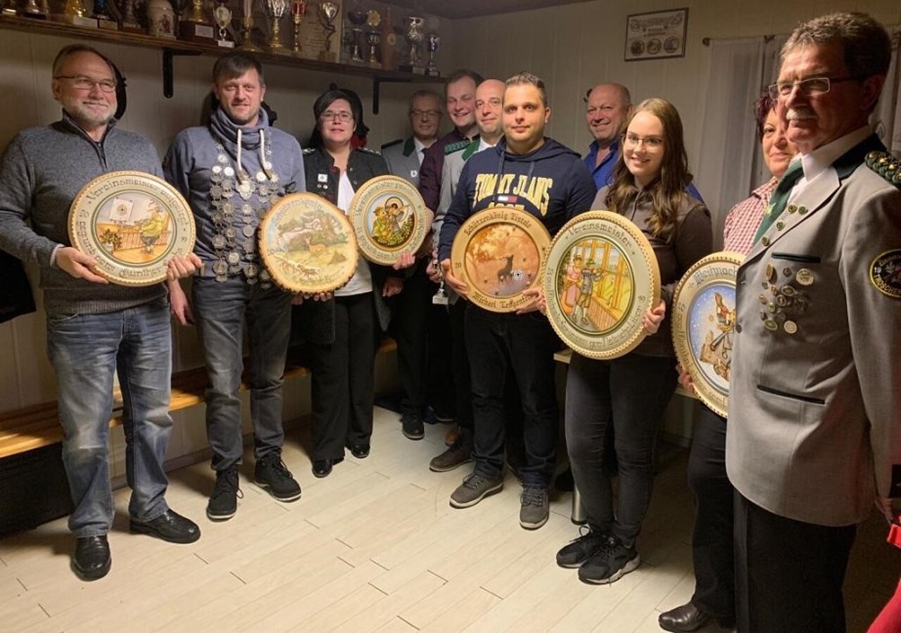 Günther Fuchs, Gerhard Preiß, Gauschützenmeisterin Rebecca Kramer, Peter Lehner, Kilian Dettenhöfer, René Popp, Michael Lengenfelder, Helmut Dettenhöfer, Natascha Libor, Christa Schönauer und Schützenmeiter Werner Wegner