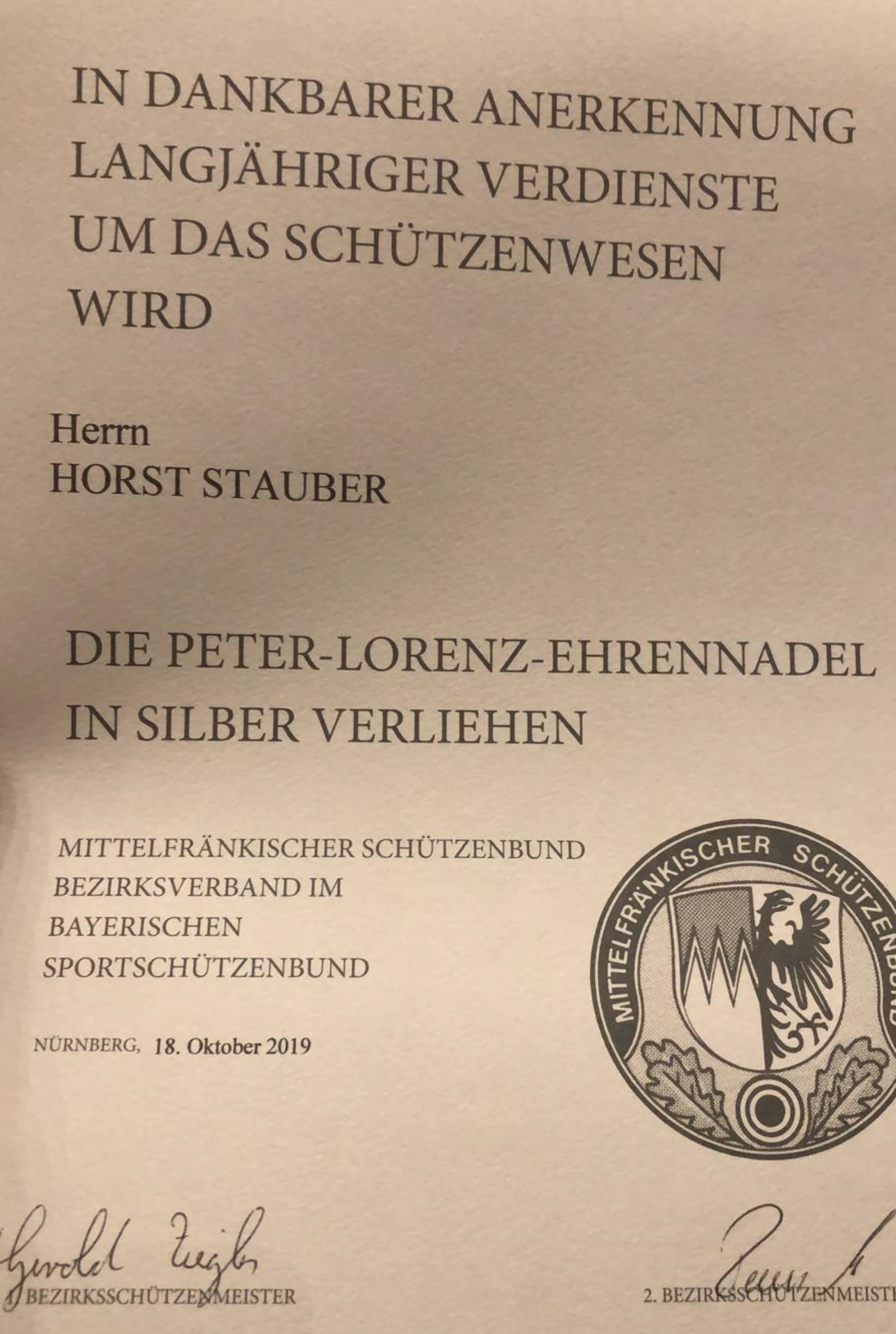 Peter-Lorenz-Ehrennadel in Silber für Horst Stauber
